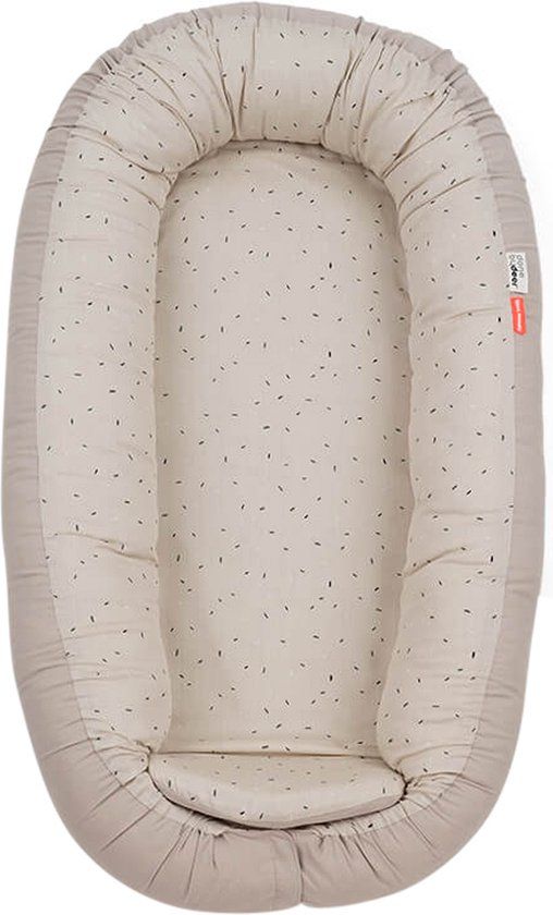 Het Cosy nest omhult je baby en creëert een veilige en vertrouwde ruimte - perfect voor speel- en buiktijd. Een zacht nest waar je kindje lekker in wegkruipt terwijl jij beide handen vrij hebt. Door middel van een verborgen YKK-rits is het matras snel te verwijderen, waardoor de hoes en vulling indien nodig samen of matras apart kunnen worden gewassen. Het zand kleurige cosy nest is aan de binnenkant bestrooid met feestelijke confetti en heeft aan de buitenkant een effen zand kleur. Het babynestje is gemaakt van zacht katoen met polyester vulling en heeft een zacht schuimmatras uit één stuk.