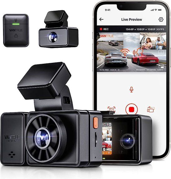 Vantrue E3 Triple 3CH 2K QuadHD Dashcam - WiFi, GPS, Night Vision, Park Mode - Back-upcamera's