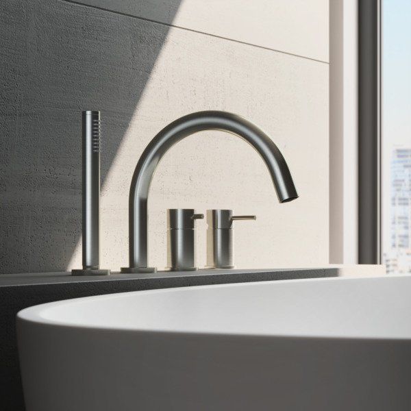 Hotbath Archie Badrandcombinatie - Hendel mengkraan met uitloop en 2 weg omstel - RVS AR073IX - Bad- en douchemengkranen