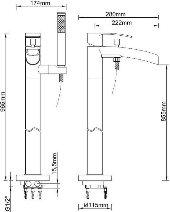 Wiesbaden Lima Vrijstaande Badmengkraan - RVS Look - Bad- en douchemengkranen
