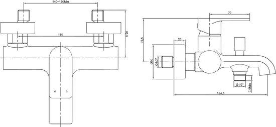 Wiesbaden Lima Badkraan - Mengkraan - Chroom - Losse kraan - Inbouw - 15 cm hartafstand - Bad- en douchemengkranen