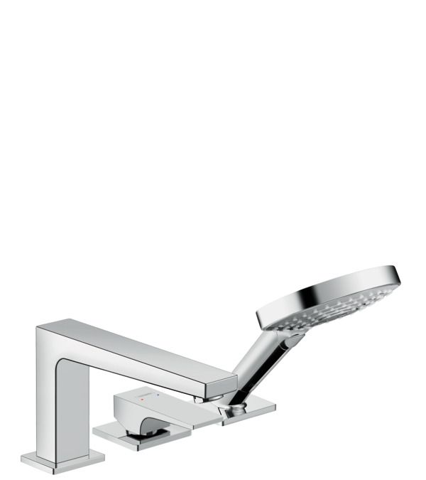 Hansgrohe Metropol 3-gats badrandkraan met douchekop glanzend chroom - Bad- en douchemengkranen
