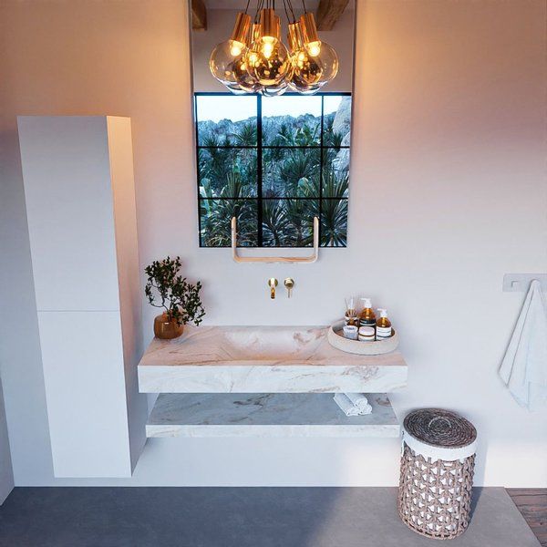 MONDIAZ ALAN-DLUX Badmeubelset 110cm planchet Frappe met vrijhangende wastafel CLOUD midden zonder kraangat kleur Frappe ADX110FraPLM0Fra