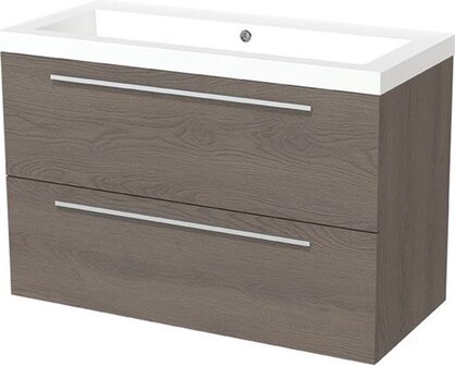 Maxaro Modulo Badkamermeubel 100cm - Donkerbruin Eiken - Mineraalmarmer Wastafel - 2 Lades