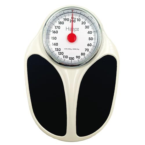 Mechanische personenweegschaal met groot blad, groot display, grote cijfers en zeer groot display: deze mechanische weegschaal van Haepi heeft een groot dienblad en biedt een ruim oppervlak om comfortabel te wegen. Hij is ook uitgerust met een groot display met grote cijfers en een zeer groot display, dat een eenvoudig en nauwkeurig aflezen van de metingen mogelijk maakt Antislip oppervlak: deze mechanische weegschaal van Haepi beschikt over een antislip oppervlak op het blad. Deze eigenschap zorgt voor verhoogde stabiliteit en veiligheid bij het wegen, waardoor het risico op uitglijden of vallen wordt verminderd Zichtbare rode wijzer: deze mechanische weegschaal van Haepi is uitgerust met een goed zichtbare rode naald. Deze functie maakt een eenvoudige en snelle aflezing van de gewichtsmeting mogelijk, biedt onmiddellijke nauwkeurigheid zonder te wachten op digitaal lezen Retro design: Haepi biedt een retro design voor deze mechanische weegschaal. Het klassieke en tijdloze uiterlijk geeft je badkamer een vintage touch Maximale capaciteit van 200 kg: deze mechanische weegschaal van Haepi heeft een maximaal weegvermogen van 200 kg. Daardoor is hij geschikt voor een groot aantal gebruikers en biedt een nauwkeurige meting van hun dagelijkse of incidentele gewicht