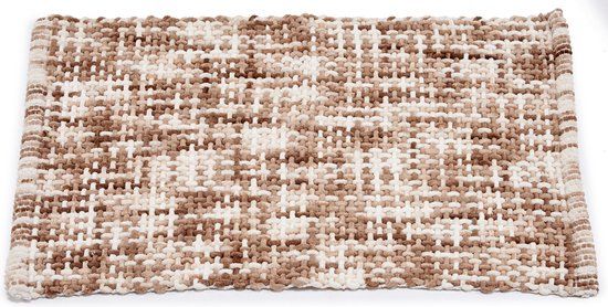 Badmat/badkamerkleed rechthoekig. De badkamermat is gemaakt van polyester en katoen, hierdoor is de mat zacht en voelt dit lekker aan je voeten. De mat heeft een willekeurig patroon. Materiaal: 60% polyester en 40% katoen. Afmeting: ca. 52 x 73 cm. Kleur: bruin gemeleerd.