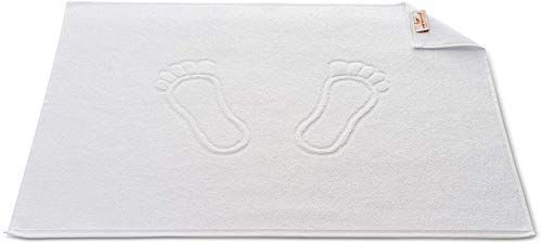 Carenesse Set van 2 badmatten met voetafdruk 50 x 70 cm wit | absorberende badmat van katoen: premium hotelkwaliteit Öko-Tex 100 | badmatten set kortpolig | douchemat dik & pluisvrij