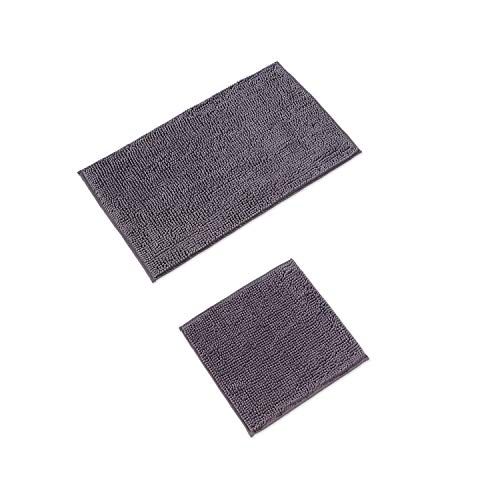 WohnDirect Badmatten set 2-delig • wc-mat (45 x 45 cm), badmat (50 x 80 cm) • antislip wasbaar badkamertapijt zonder wc-uitsparing - grijs