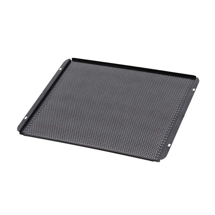 Geperforeerde bakplaat, gelijkmatige luchtstroom. Perfect krokant afgebakken*