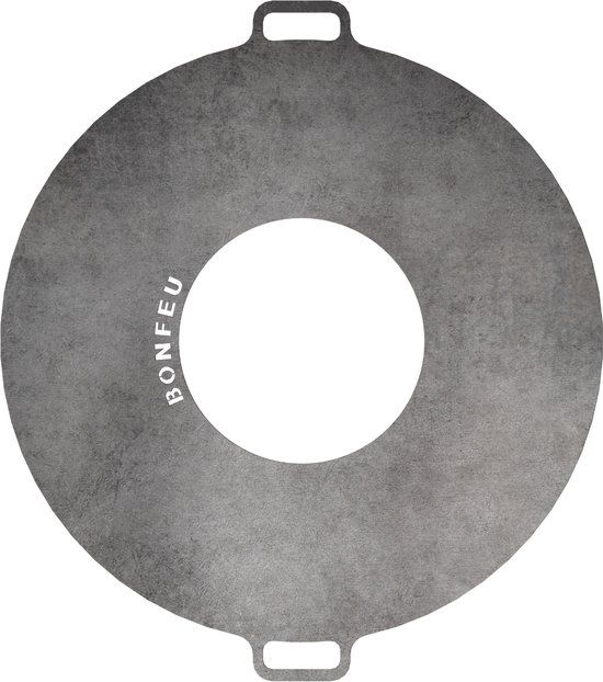 De BonFeu BonPlancha Vuurschaal Ø60 is een stevige bakplaat voor over uw vuurschaal met een diameter van 60 cm. Leg de plaat, ook wel plancha genoemd, over uw BonFeu vuurschaal 60, of andere vuurschaal en u kunt gelijk lekker barbecueën! De BonPlancha heeft een mooi uitgelaserd logo, en een handvat om hem te plaatsen.