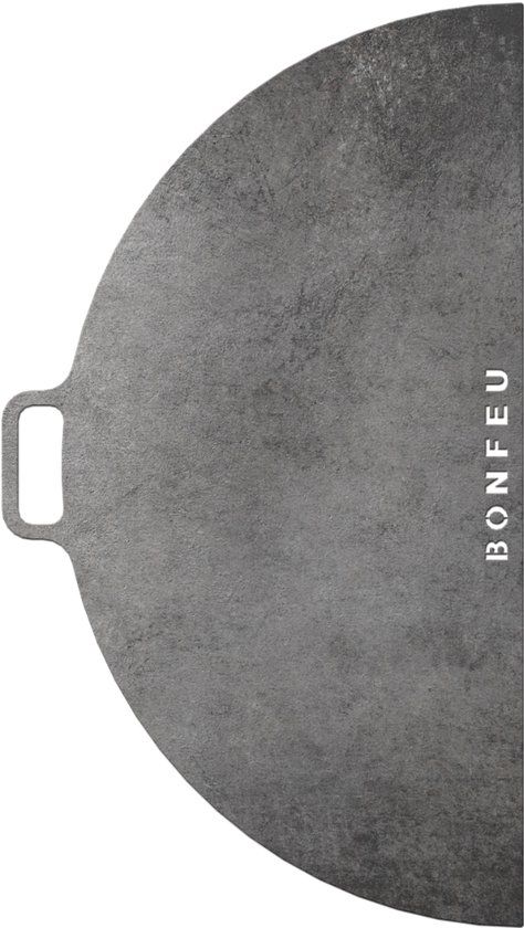 De BonFeu BonPlancha ½ Vuurschaal Ø80 is een stevige halve bakplaat voor over uw vuurschaal met een diameter van 80 cm. Leg de plaat, ook wel plancha genoemd, over uw BonFeu vuurschaal 80, of andere vuurschaal en u kunt gelijk lekker barbecueën! De BonPlancha heeft een mooi uitgelaserd logo, en een handvat om hem te plaatsen.