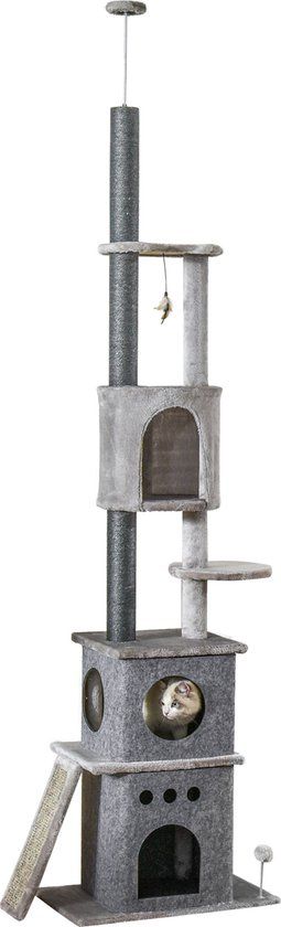 PawHut In hoogte verstelbare krabpaal met kattenspeeltje - grijs - Ballen voor tetherball
