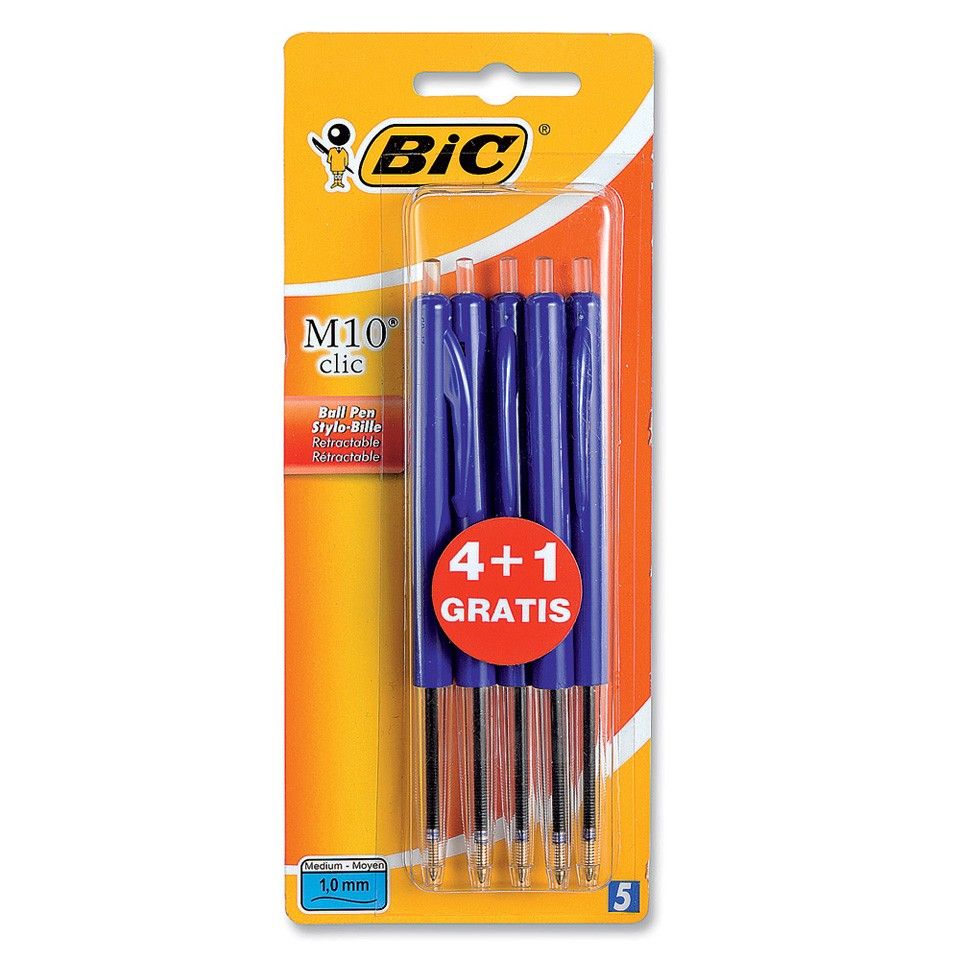 BIC Balpen M10 Blauw 4+1 - Medium Punt - 0.4mm - 5 Stuks