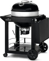 - De sterke, stevige zwarte wagen bevat een opklapbare zijtafel voor extra bereidingsruimte, modulaire opbergruimte (ook voor draaispitaccessoires) en gereedschapshaken