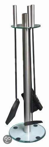 Haardstellen Nl Smetal 018 Haardset 3-delig - rvs - glas - H63/Ø25 haardhout