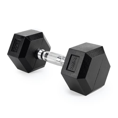 TREXO Hex HXD50 Halter - 5 kg - Hexagon - Rubber - Krachttraining - Thuis - Ergonomisch - Stabiel - Barbells en staven voor gewichtheffen