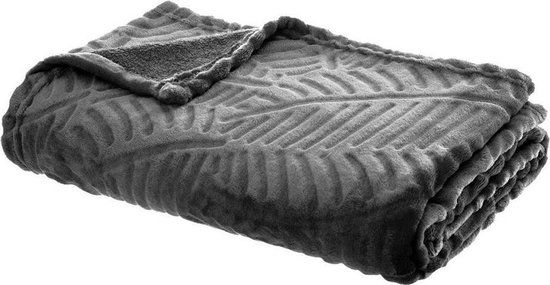Fleece Plaid 150 cm x 125 cm Leaves Grijs