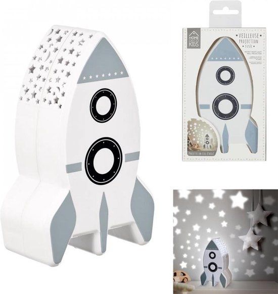 Home Deco Kids Rocket Night Light with Wall Projection - Blue/White/Black - Battery Powered - Bedlampen