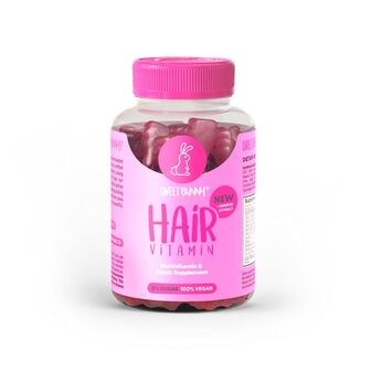 Haarvitamines die bijdragen aan het versterken en herstellen van het haar waardoor je lokken lang en gezond worden. SweetBunny® Hair vitamins zijn suikervrije vitamines voor het haar in de vorm van kleine roze konijntjes, die heerlijk ruiken én smaken! Deze haarvitamines bevat ingrediënten die kunnen bijdragen aan het versterken van het haar en het lang en gezond worden van het haar. Sweet Bunny® Hair Vitamins bevatten de ingrediënten Biotine en Zink, waarvan klinisch is bewezen dat deze positief kunnen bijdragen aan de haargroei. De haarvitamines zijn te gebruiken voor alle soorten haartypes en zijn geschikt voor zowel mannen als vrouwen. De vitamines van SweetBunny® bevatten geen hormonen en zullen dus de groei van lichaamshaar niet beïnvloeden. Daarnaast bevatten de gummies geen gluten, tarwe, suiker, soja, zuivel, rund, varken, eieren, vis en pinda's. Bovendien zijn de haarvitamines cruelty free en zijn de ingrediënten halal gecertificeerd. Belangrijke kenmerken: * Zoete smaak * Heerlijke geur * Voor mannen en vrouwen * Bevat vitamine A, C, E, B6, B9, B12 en Biotine * Biotine kan de conditie van het haar verbeteren * Bevat geen hormonen * Suikervrij * Zink draagt bij aan de normale haargroei * Halal gecertificeerd