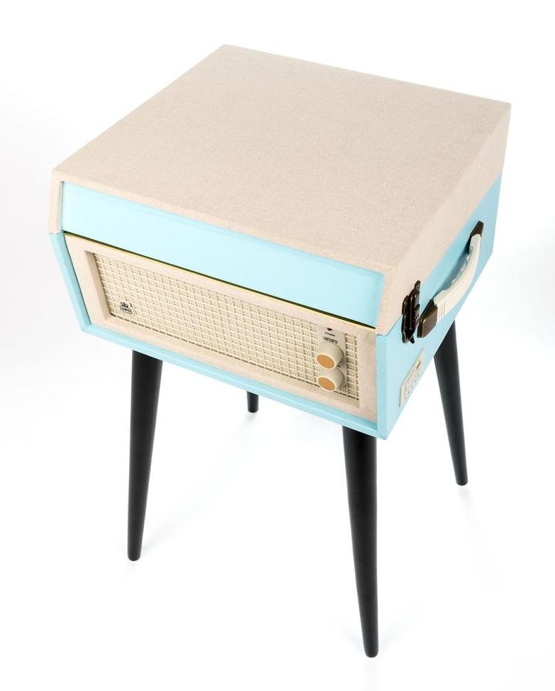 GPO BERMUDABLU Kofferplatenspeler met ingebouwde speakers op pootjes - Blauw/Crème