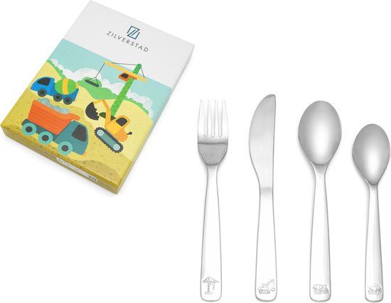 Zilverstad Kinderbestek 4-delig Bouwvoertuigen RVS 18/10 - Besteksets