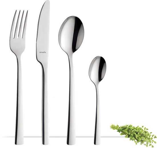 De Manille bestekset van Amefa heeft slanke en platte handgrepen, waardoor hij er strak en modern uitziet. Door de hoogglanzende afwerking kun je hem combineren met verschillende stijlen en materialen.