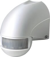 - Automatically switches lamps on and off (incandescent, halogen, energy-saving bulbs and LED lamps) when someone enters the detection zone.\n- For indoor and outdoor use, IP 44.\n- Detection angle 180°. Max. range 12 m.\n- Duty cycle adjustable between 10 sec. and 4 min.\n- Response brightness adjustable.\n- Switching capacity max. 1000 Watt (bulbs), max. 300 Watt (energy-saving lamp), max. 100 Watt (LED).\n- Adjustable vertically and horizontally.\n- In colourful display-packaging.\n- Voltage: 230 V.\n- Colour: White.