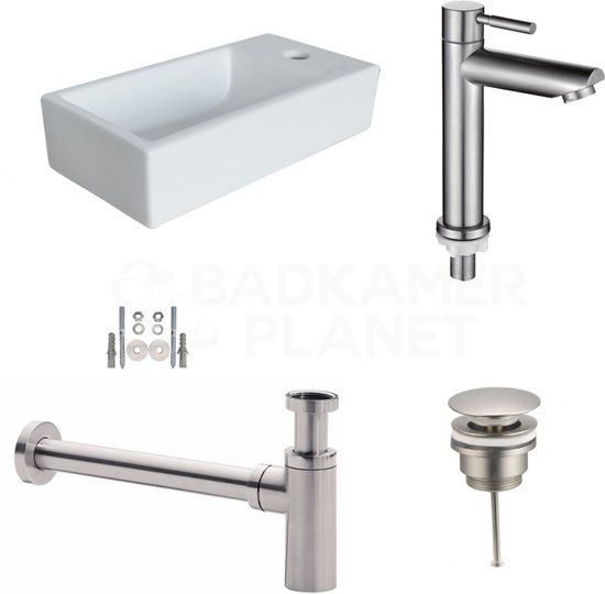 Badkamerplanet Keramische Fonteinset Aquino 45x25x12 cm - Wit - Bidetkranen
