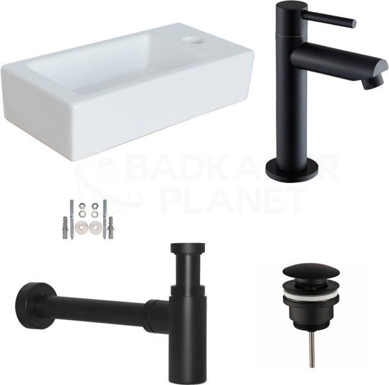 Badkamerplanet Fonteinset Aquino - 45x25x12 cm - Mat Zwart - Keramiek - Bidetkranen