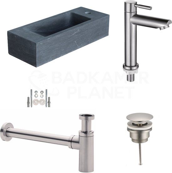 Badkamerplanet Natuursteen Fonteinset Siena - 17x45x10 cm - Incl. Kraan, Afvoer en Sifon RVS - Bidetkranen