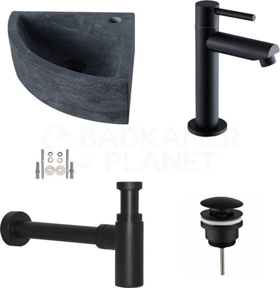 Bekijk productBadkamerplanet Natuursteen Fonteinset Como 30x30x10 cm - Mat Zwart - Incl. Kraan, Afvoer en Sifon - Bidetkranen