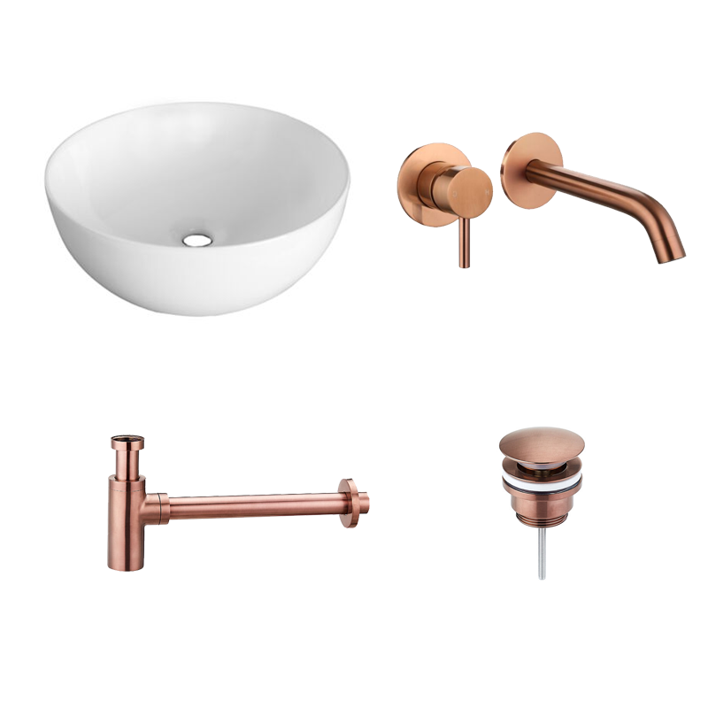 Badkamerplanet Viona Waskomset - Brons - 40,5x40,5x14 cm - Keramiek - Bidetkranen