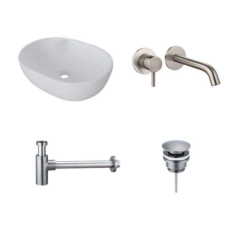 Badkamerplanet Keramische Waskomset Milo Gun Metal Inbouwkraan 48x35x14 cm - Bidetkranen