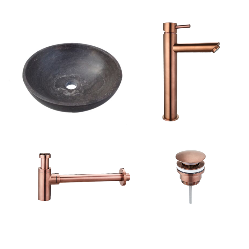 Badkamerplanet Natuurstenen Waskomset Rond Brons Opbouwkraan 38x38x12 cm