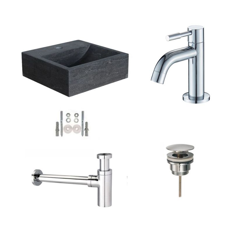 Badkamerplanet Natuursteen Fonteinset Sovana 30x30x10 cm met Elba Fonteinkraan, Afvoer en Sifon Chroom - Bidetkranen
