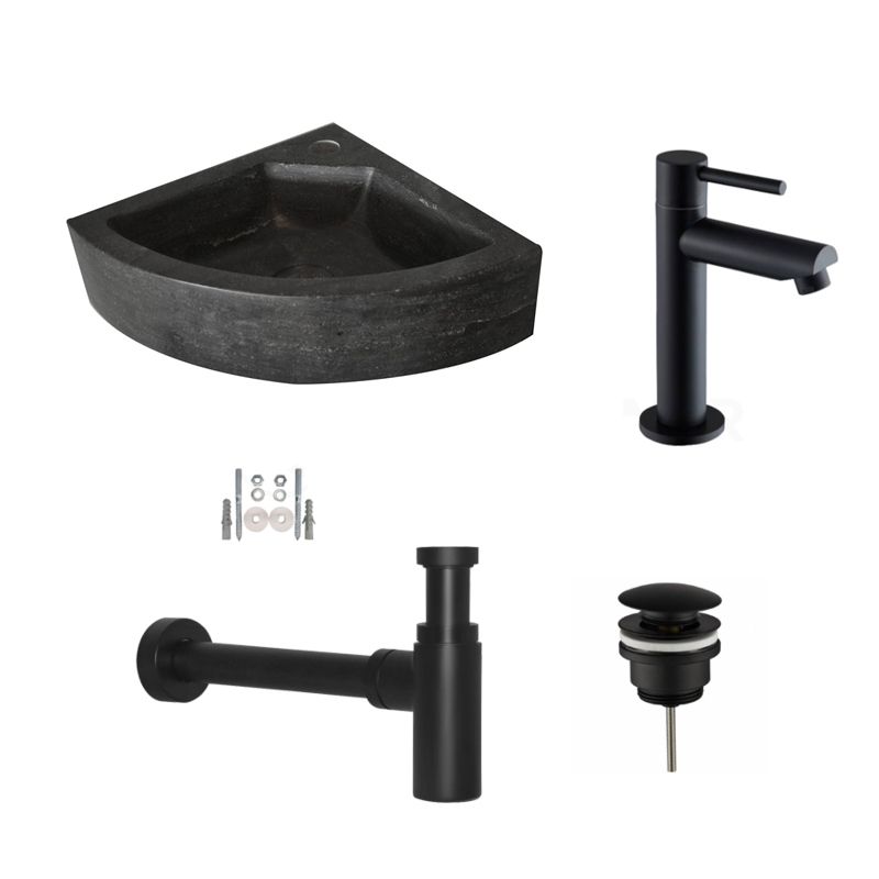 Badkamerplanet Fonteinset Hardstenen Corner Mat Zwart 30x30x10 cm - Bidetkranen