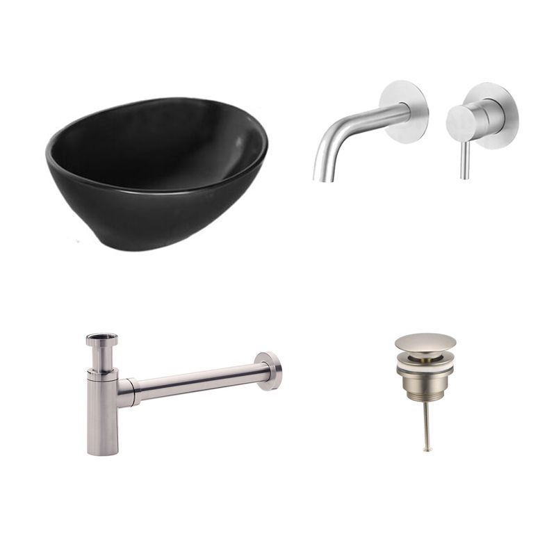 Badkamerplanet Waskomset Vienna Mat Zwart Keramiek RVS Inbouwkraan 40,5x33x14 cm - Bidetkranen