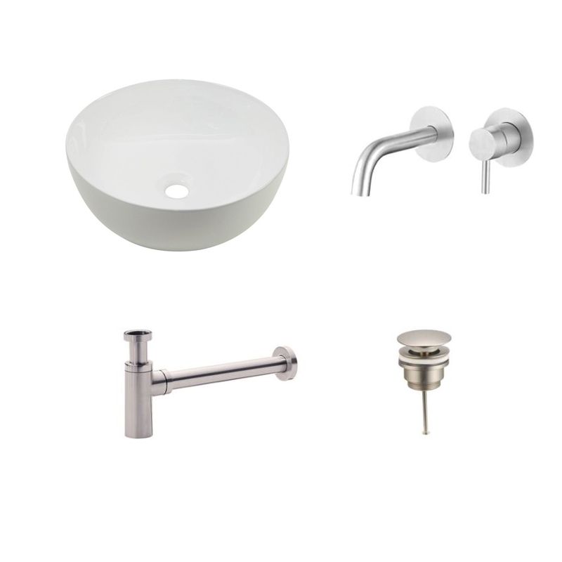 Badkamerplanet Waskomset Keramiek Pisa met RVS Inbouwkraan 40,5x40,5x14 cm
