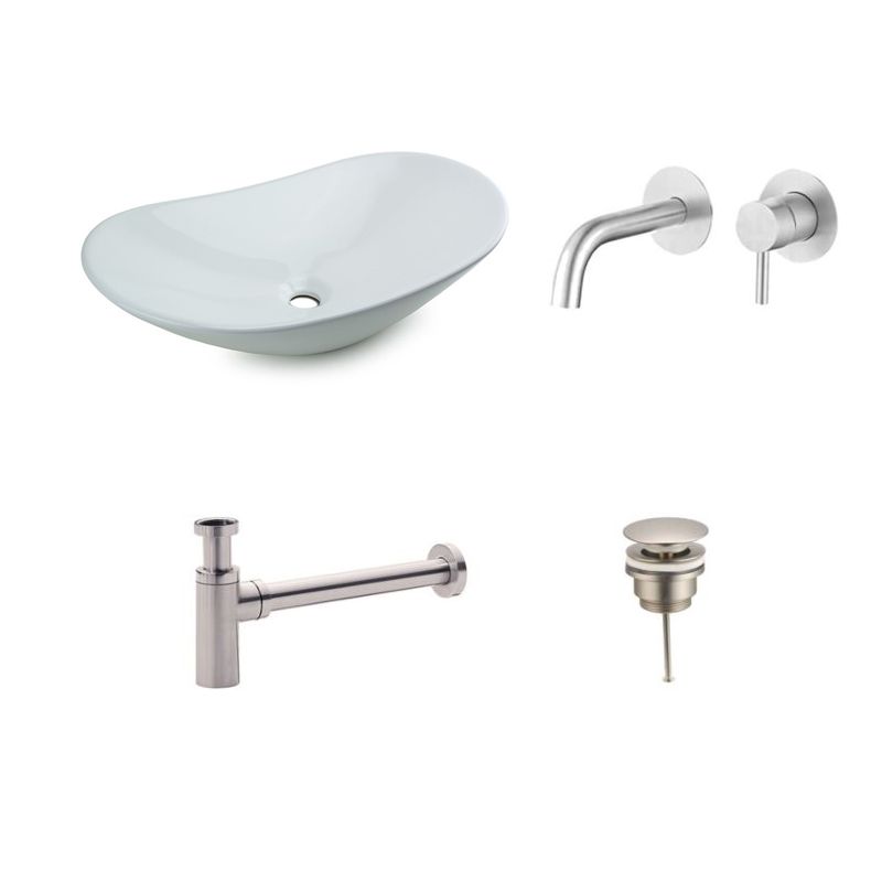 Badkamerplanet Waskomset Keramiek Acosta RVS Inbouwkraan 62x34x14,5 cm - Bidetkranen