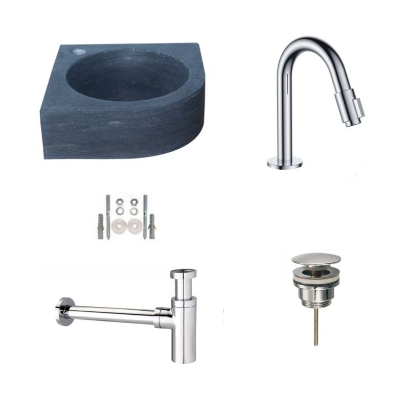 Badkamerplanet Natuursteen Fonteinset Rione 30x30x10 cm met Elba Fonteinkraan en Draaibare Uitloop
