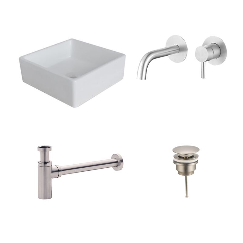 Badkamerplanet Keramische Waskomset Quatra RVS Inbouwkraan 38x38x13 cm