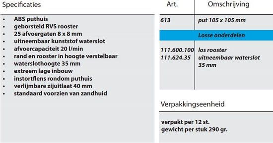 Van den Berg Afvoerputten ABS Douchegoot - 600 x 50 mm - Zijkant Uitlaat - Dicht Rooster - Bidets