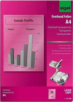 De transparante, speciaal gecoate overhead-folies voor zwart/wit laser en -kopieerapparaten in het formaat DIN A4 zijn tweezijdig te bedrukken en dankzij secondesnelle droging direct te gebruiken. De folies zijn in stapels te verwerken en kunnen via de stapelinvoer van de printer worden ingevoerd. Voor alle zwart/wit laserprinters en ook kopieerapparaten. Verpakking met 50 bladen.