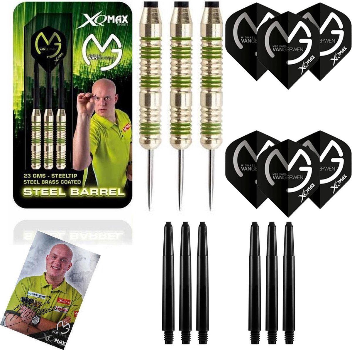 Dragon Darts Michael van Gerwen Steeldarts Green Edition 23 gram - Dartpijlen - Gesigneerde Foto - 6 Dartshafts + 6 Dartflights - Darten