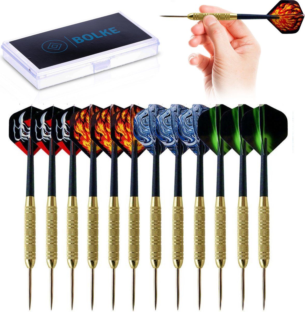 Merkloos Darts Set - Victory Blue Line - 23 gram - Steeltip - 100% Brass - 9 Darts - Black/Blue