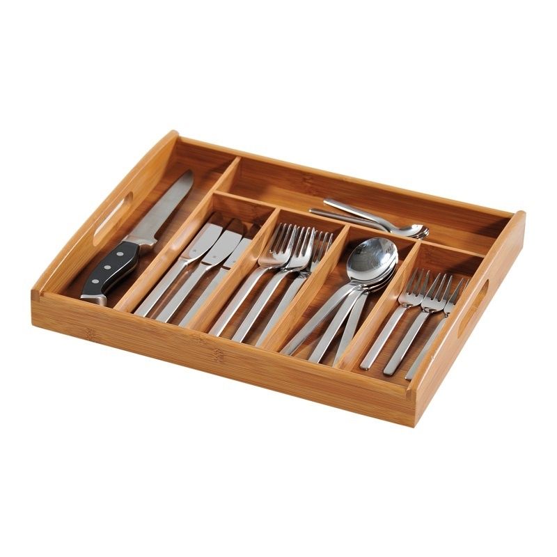 KESPER FSC® Bamboe Bestekbak Dienblad met Handvatten | 6 Vaks | 38 x 32 x 4 cm | Bamboe Hout