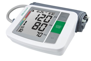 De Medisana BU 510 is een semi-automatische bloeddrukmeter ontworpen voor bovenarm montage. Het grijze apparaat heeft een duidelijk LCD-display en weegt 254 kg. Handig op te bergen dankzij een bijgeleverde opbergetui, dit apparaat wordt gevoed door vier AA-batterijen. Naast het meten van de puls - binnen een bereik van 40 tot 199 - kan het zowel diastolische als systolische bloeddruk meten. De bloeddrukmeter kan gegevens opslaan van twee verschillende gebruikers in zijn geheugenregisters, tot een totaal van 90 metingen. Het heeft ook een aritmie-detectiefunctie voor eventuele onregelmatigheden in hartslag. De maat van de cuff is instelbaar van 22 tot 36 cm en de metingen worden gedaan met de oscillometrische methode. Het apparaat heeft ook een klok en datum display. De temperatuurweergave is in mmHg en het apparaat heeft een automatische afslag om de batterijen te sparen. Met een breedte van 130 cm, een hoogte van 60 cm en diepte van 109 cm is dit een compact en praktisch medisch hulpmiddel. Een gebruiksvriendelijke en nuttige hulp bij het monitoren van de bloeddruk.