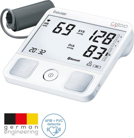 Beurer BM 93 Cardio ECG Bloeddrukmeter bovenarm - ECG-functie - Bluetooth® - HealthManager Pro app - BM 93 cardio - Rapport voor dokter - Onregelmatige hartslag - Risico-indicator - 5 Jaar garantie