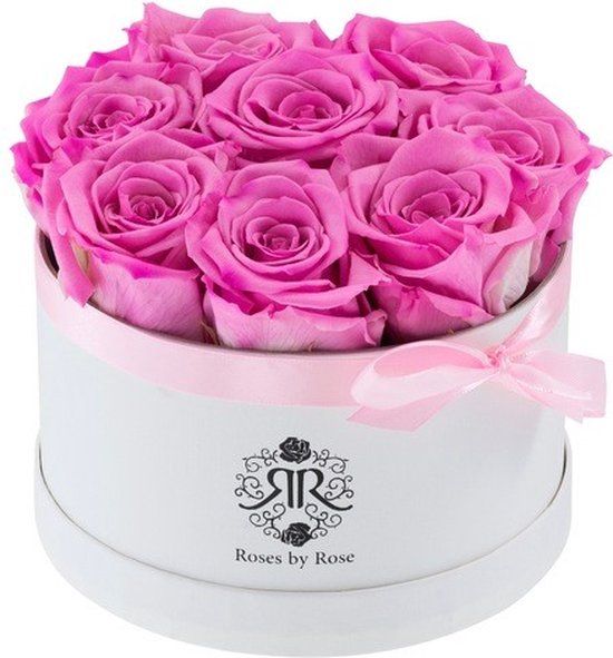 Roses By Rose Eternity rozen - Cotton Candy Flowerbox - 9 roze longlife rozen - 16 cm - Kerst cadeau - Bloemen