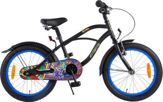 Veiligheid staat voorop! Daarom heeft deze gave fiets een handrem en terugtraprem en een gesloten kettingkast. Daarnaast heeft de fietsen een bel, en reflectoren voor-, achterop, en in de trappers. Ook aan het comfort is gedacht. De mooie zwarte Batman fiets met blauwe accenten heeft extra lange spatborden om al het vuil tegen te houden, een aangenaam zacht zadel en een uniek frame dat wel tegen een stootje kan. Om zo lang mogelijk van de fiets te kunnen genieten zijn het zadel en stuur in hoogte verstelbaar. Kortom: een topkwaliteit fiets waar uw kind nog jaren van kan genieten!